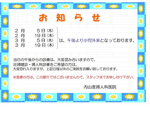 小児外来(2月・3月)のお知らせ